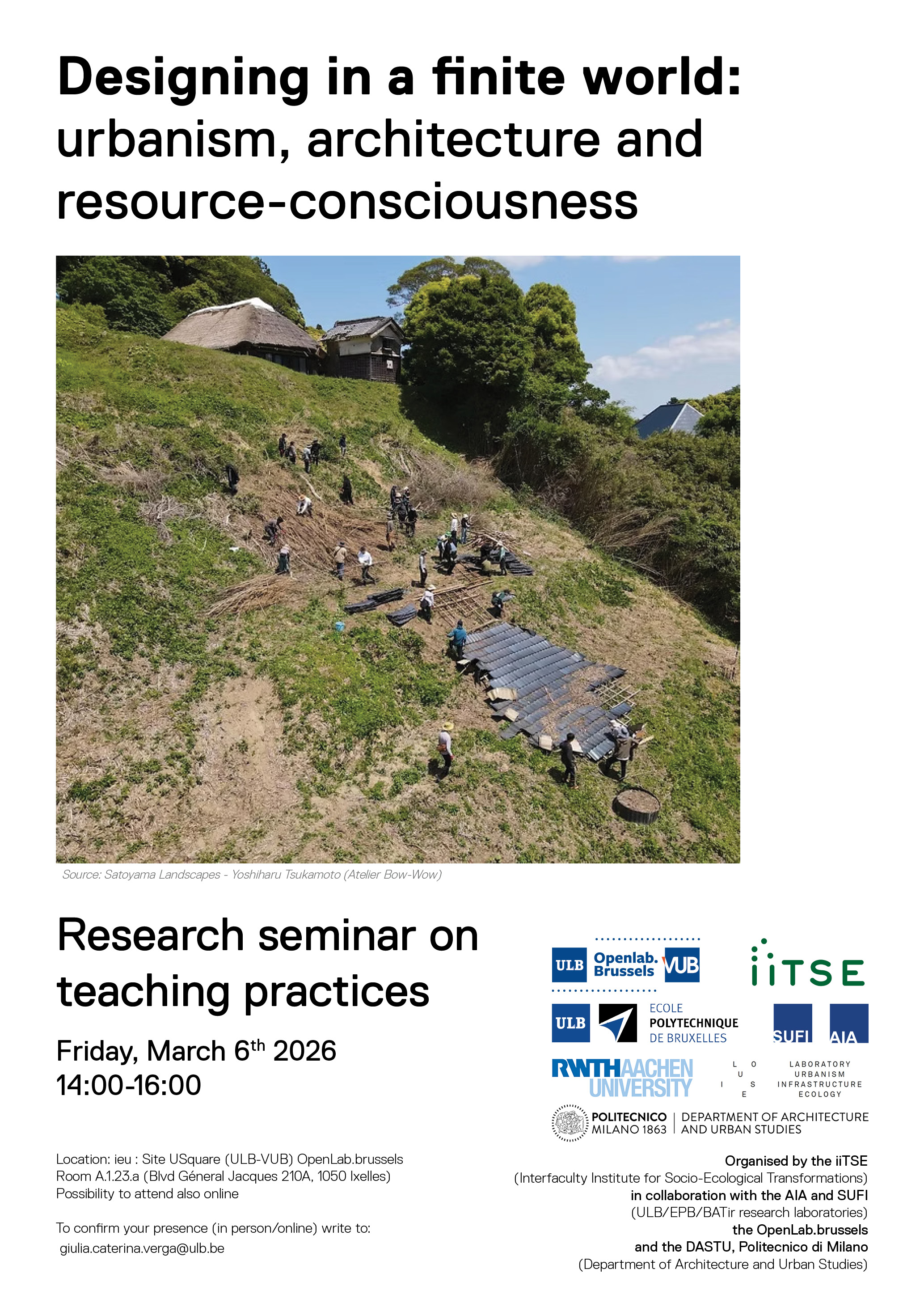We are pleased to share that the second session of our seminar series on teaching practices will take place on Friday, March 6th, 2026, from 14:00 to 16:00. This session, titled “Designing in a Finite World: urbanism, architecture and resource‑consciousness,” focuses on how design education can better engage with finite resources, existing material stocks, and situated socio‑ecological transitions.